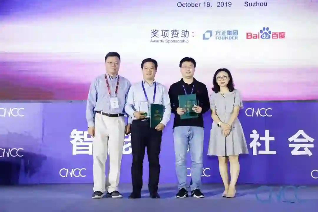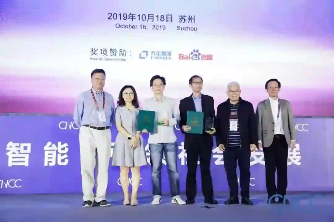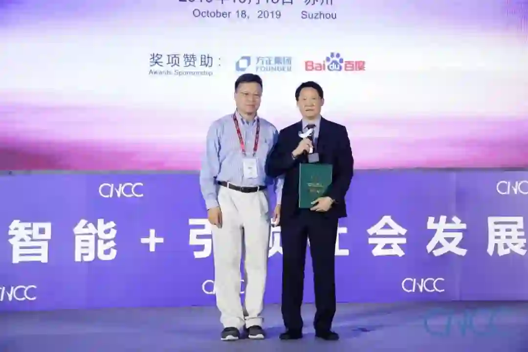 2019年CCF王选奖授予清华大学教授胡事民,深圳市大疆创新科技有限公司创始人兼CEO汪滔(代领人:大疆创新科技有限公司企业战略发展高级总监张晓楠女士)。