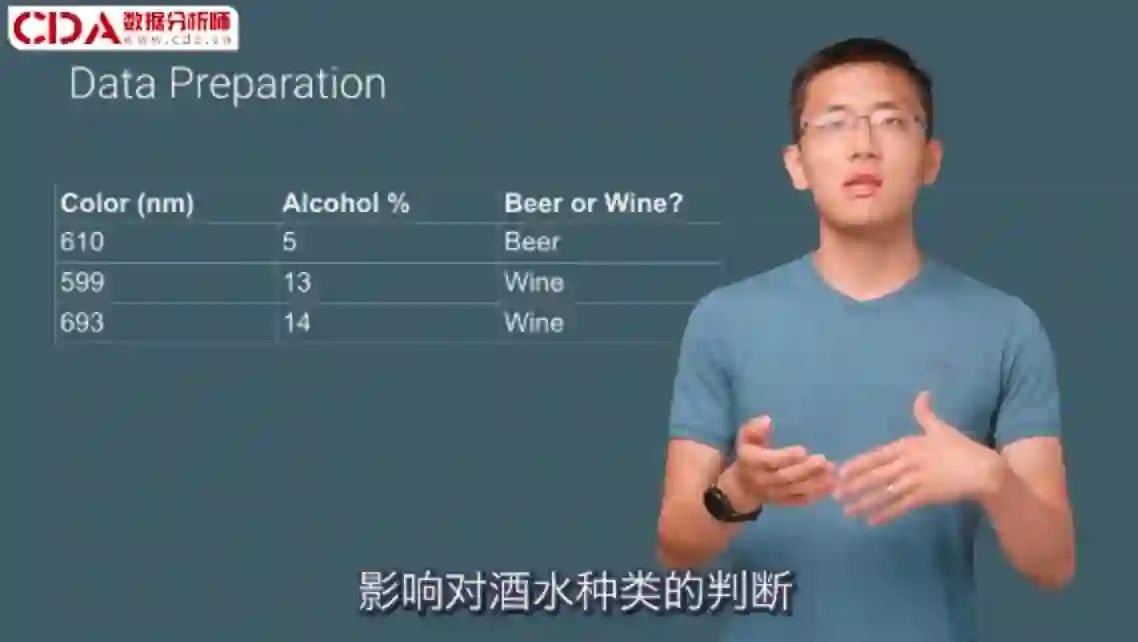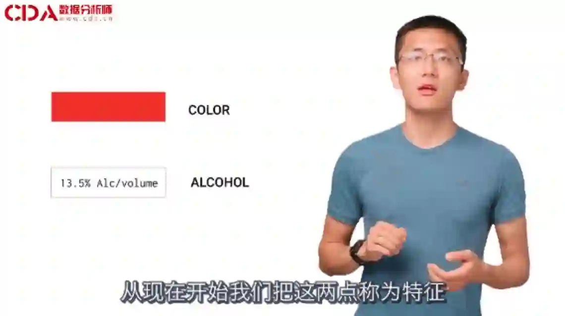 这一步非常重要,因为你所收集数据的质量和数量将直接决定预测模型的效果。这个例子里 我们收集的数据就是,每种酒水的颜色和酒精含量。