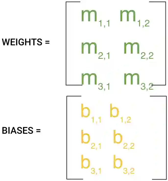 机器学习中可能存在很多m,因为有很多特征。这些值通常构成矩阵,称为w即权重矩阵。类似的我们把b集合在一起,称为偏差。