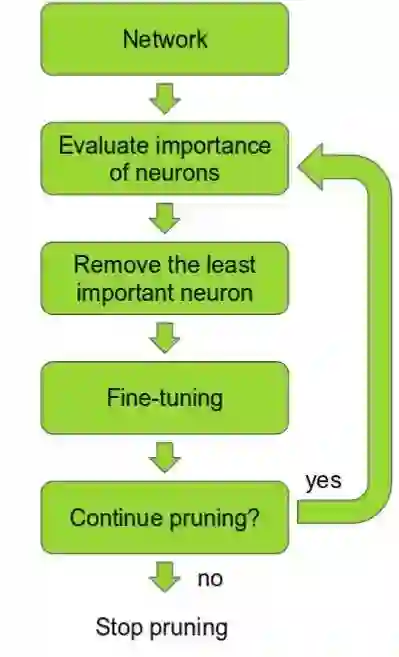 这个想法是,在网络中的许多参数中,有些是多余的,对输出没有太大贡献。如果您可以根据对网络的贡献排列网络中的神经元,则可以从网络中移除低排名的神经元,从而形成更小,更快的网络。可以根据神经元权重的L1 / L2均值,平均激活,一些验证集上神经元不为零的次数以及其他创造性方法来进行排序。获得更快/更小的网络对于在移动设备上运行深度学习网络非常重要。