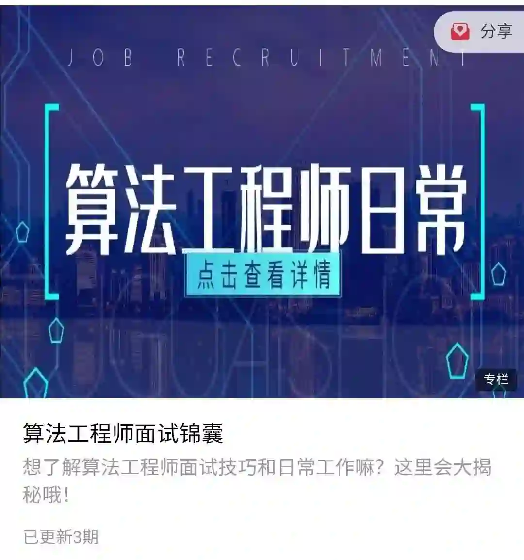 为了激励大家完成学习,我们还准备了价值298元的算法工程师面试锦囊。只要完成全部课程的学习,你就能私信班主任获取!
