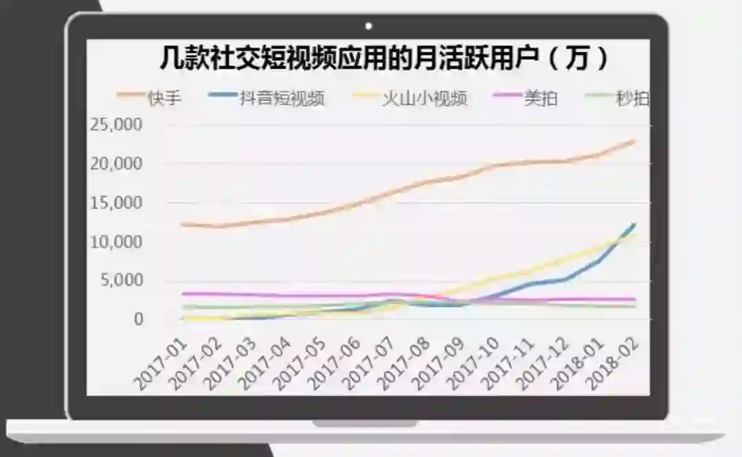 从Questmobile的数据来看,上线一年半后,抖音的月活用户,已经过亿,直追领头的快手,趋势之迅猛令人咋舌。
