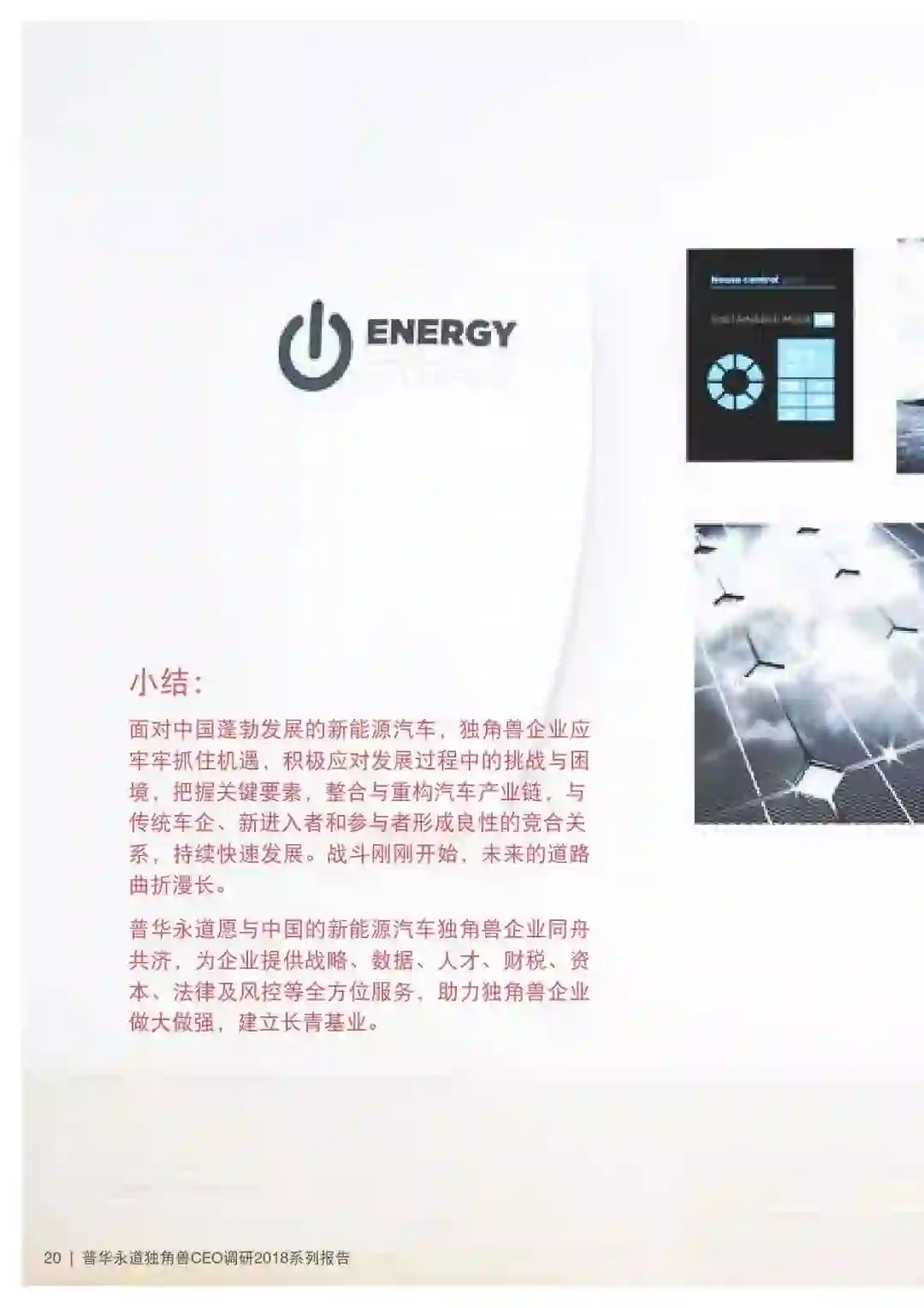 普华永道从市场概况、面临挑战、未来发展等多个角度对新能源汽车行业及独角兽企业的最新情况进行追踪调研,发布《新能源汽车独角兽报告》,对企业发展提出可行性建议,助力新能源汽车企业应对挑战,增强核心竞争力。