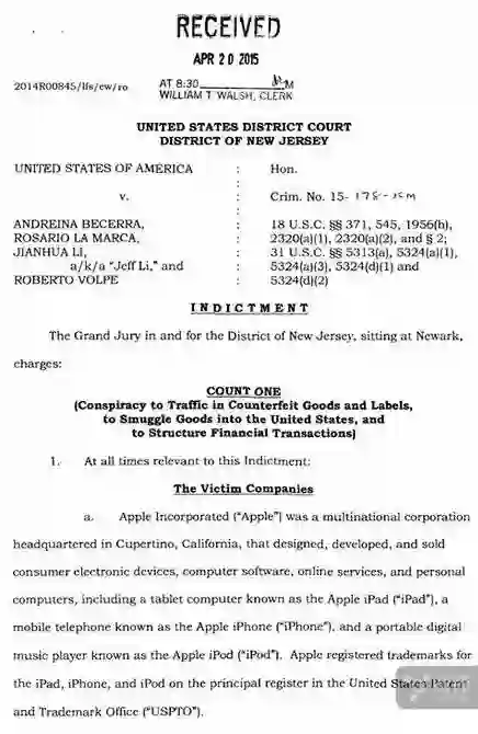 据悉,这个名为李建华(音译)的中国公民以学生签证的名义居住在美国,据法庭文件,李建华和几名同伙将4万多个 iPhone、iPad 和相关配件走私到了美国,同时李建华还协助他人走私苹果产品的标签和包装。现在他承认了走私罪和贩卖假冒伪劣产品罪名的指控。