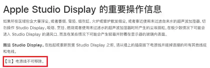 因为苹果的独特设计,Studio Display 在售卖时,电源线也是和显示器本体连在一起包装的,可能是业界仅此一家了。
