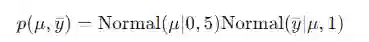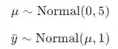 mu =LatentVariable("mu",Normal, [0.0, 5.0])y_bar =ObservedVariable("y_bar", Normal, [mu, 1.0],observed=5.0)print(mu)#=> <__main__.LatentVariable object at 0x7f14f96719a0>print(mu.dist_args)#=> [0.0, 5.0]print(y_bar)#=> <__main__.ObservedVariable object at 0x7f14f9671940>print(y_bar.dist_args)# => [<__main__.LatentVariable object at 0x7f14f96719a0>,1.0]