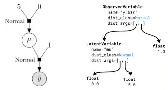 classLatentVariable:def __init__(self, name, dist_class, dist_args):self.name = nameself.dist_class = dist_classself.dist_args = dist_argsclassObservedVariable:def __init__(self, name, dist_class, dist_args, observed):self.name = nameself.dist_class = dist_classself.dist_args = dist_argsself.observed = observed