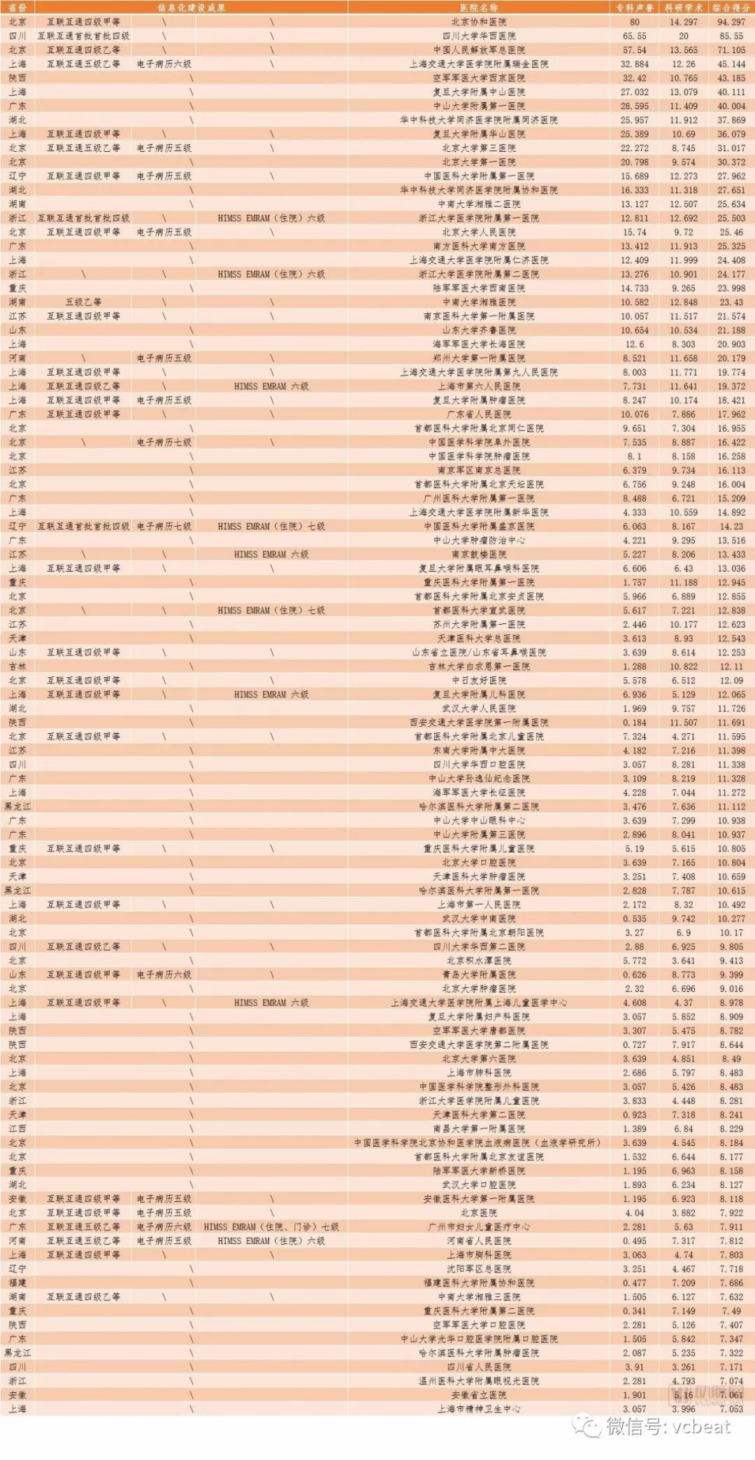 显而易见,这样的医院有两家:一家信息化实力很强,但学科声誉和科研学术综合能力在百强榜中排行不高,另一家则相反。由表可知,空军军医大学西京医院和广州市妇女儿童医疗中心分别凭借综合能力第5名、无信息化等级,以及综合能力第87名、三大等级评测皆全成功入选。