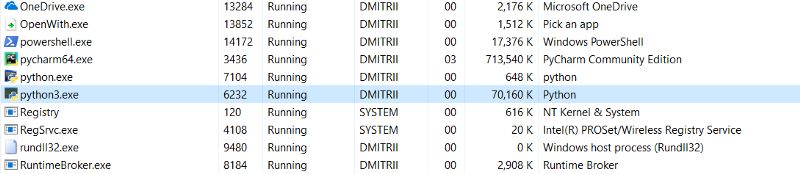 今天的最后一个测试。有趣的是整个程序需要多少内存。添加一个无限循环的程序,以便它不结束,看看Windows任务管理器中的内存消耗。