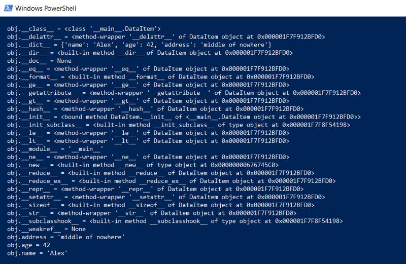d2 = DataItem("Boris", 24, "In the middle of nowhere")