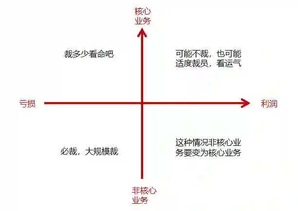 从BG、BU来说,哪个是重灾区,主要两个因素,第一,当前业务是核心还是非核心业务;第二,当前业务赚钱还是不赚钱。