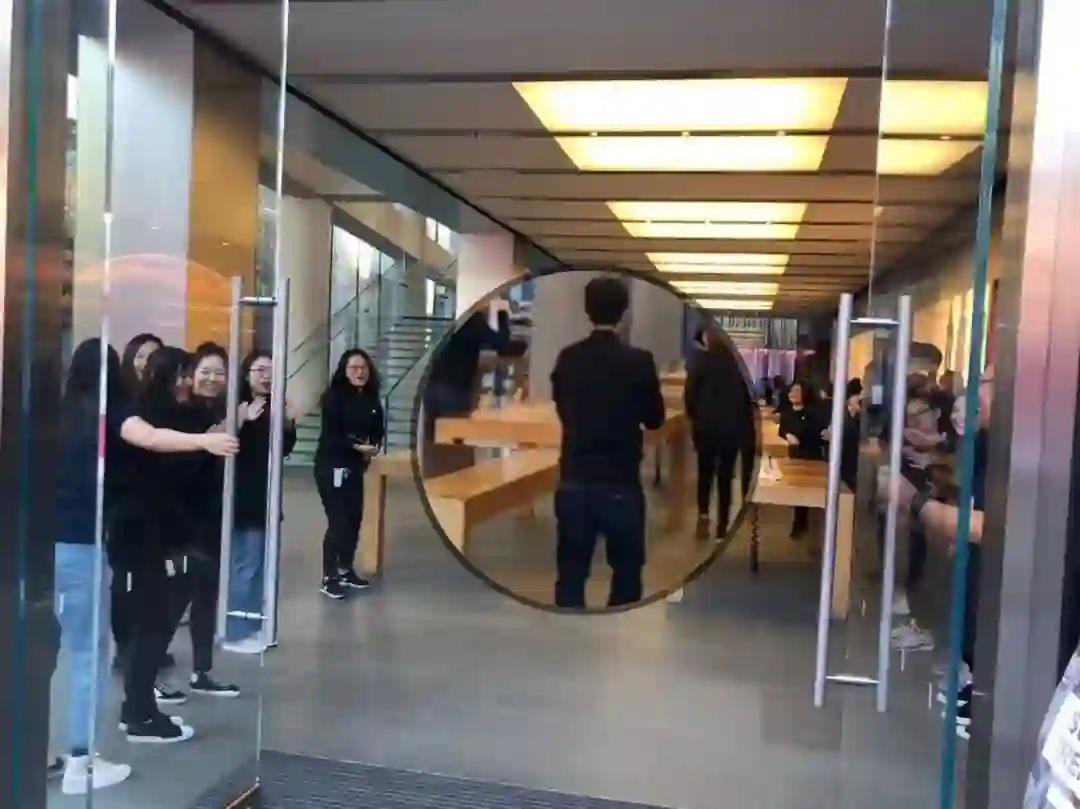8点到了,之前预约过的客户可以到点取货。店员很热情地跟在倒数十个数,然后很有仪式感地打开大门,满面笑容迎接涌入的果粉——