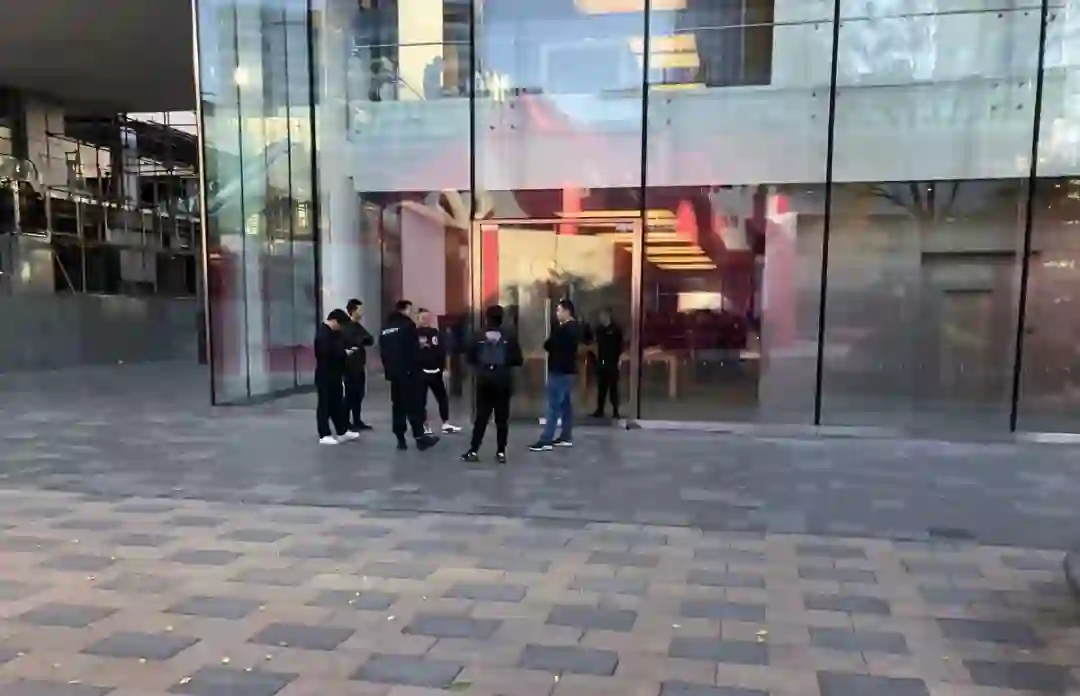 7点56分,三里屯Apple Store门前排了几个黄牛