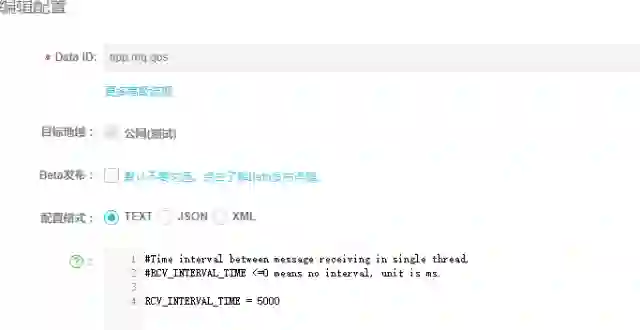 注:这里 RCV_INTERVAL_TIME 参数的访问是故意没有加锁的,读者可以自行思考原因。Aliyun ONS Client不提供动态线程并发数,默认并发为20。因此这里正好使用消费延时参数来动态调节QoS。