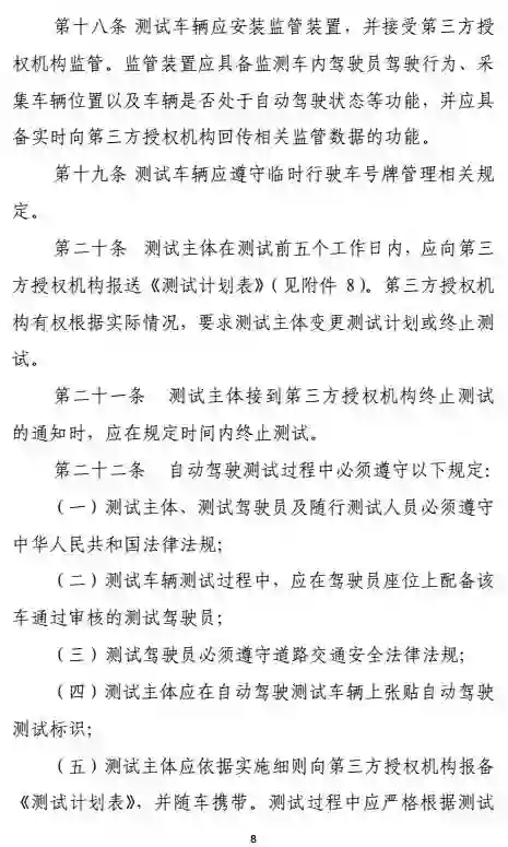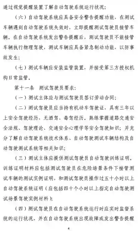 测试的车辆还必须安装监管装置,可以随时监测驾驶员的驾驶行为;