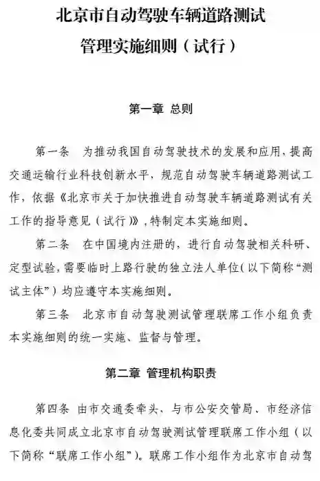附件二:北京市自动驾驶车辆道路测试管理实施细则(试行)