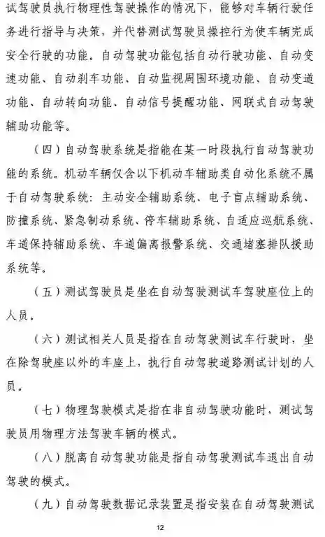 指导意见和实施细则将明确上路测试的有关要求和管理流程,在保证道路交通安全的前提下积极、稳妥地推动自动驾驶车辆实际道路测试工作。