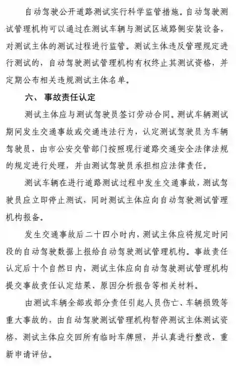 测试主体应与测试驾驶员签订劳动合同。测试车辆测试期间发生交通事故或交通违法行为,认定测试驾驶员为车辆驾驶员,由市公安交管部门按照现行道路交通安全法律法规的规定进行处理,并由测试驾驶员承担相应法律责任。