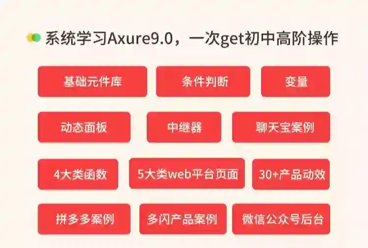 你以往不会的Axure常用功能,都能掌握;之前使用过的Axure功能,能深入掌握更多实用用法。
