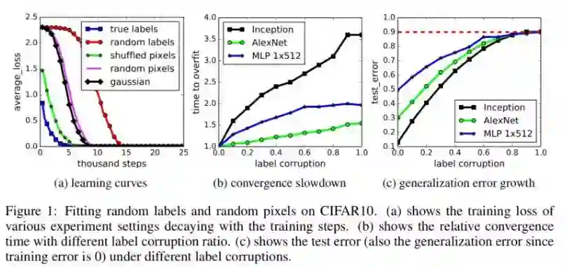 单独通过随机标签,在不改变模型的大小、超参数或者优化下,我们可以强制明显地提高模型的泛化误差。我们在 CIFA 10 和 ImageNet 分类基准上训练的几种不同标准体系确立了这个事实。
