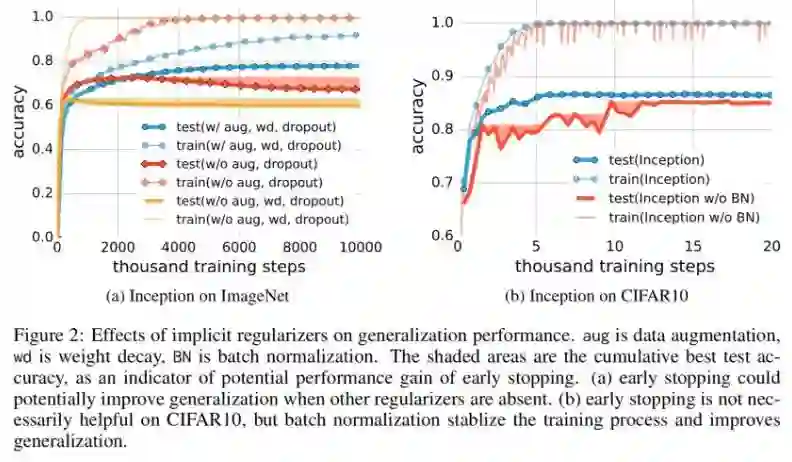 显性正则化似乎更多的是一个调整参数,有助于提高泛化能力,但是其缺失也并不意味着泛化误差。当然并非所有能够拟合训练数据的模型都能很好地泛化。本文分析中的有趣一面是,我们仅仅通过使用梯度下降过程就获得了一定量的正则化: