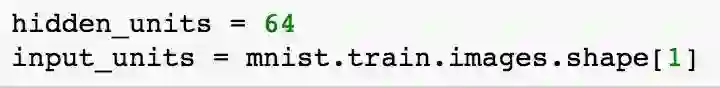 我们把数据加载进来以后就可以进行最简单的建模。在这之前,我们首先来获取一下 input 数据的大小,我们加载进来的图片是 28x28 的像素块,TensorFlow 已经帮我们处理成了 784 维度的向量。同时我们还需要指定一下 hidden layer 的大小。
