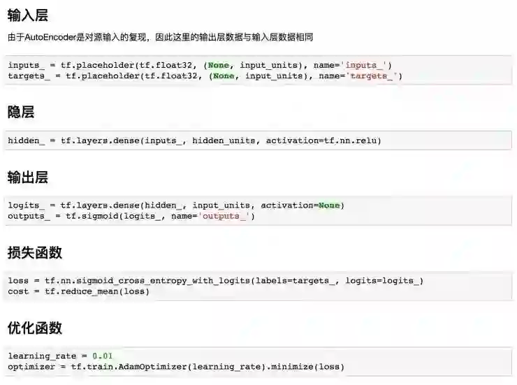 自编码器实际上是通过去最小化 target 和 input 的差别来进行优化,即让输出层尽可能地去复现原来的信息。由于自编码器的基础形式比较简单,对于它的一些变体也非常之多,包括 DAE,SDAE,VAE 等等,如果感兴趣的小伙伴可以去网上搜一下其他相关信息。