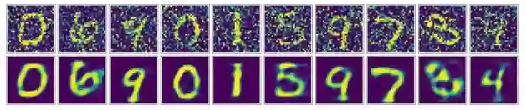 有些小伙伴可能就会想,我们也可以用基础版的 input-hidden-output 结构的 AutoEncoder 来实现降噪。因此我也实现了一版用最简单的 input-hidden-output 结构进行降噪训练的模型(代码在我的 GitHub)。我们来看看它的结果: