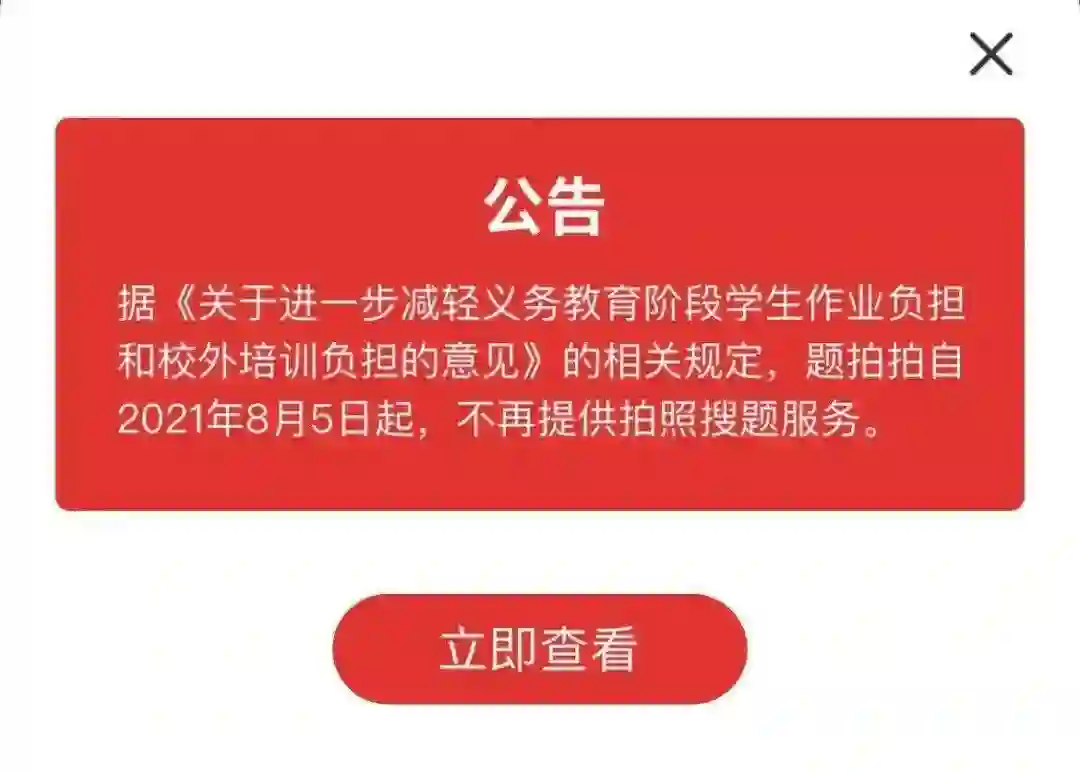 去年7月,“双减”政策中明确要求线上培训机构不得提供和传播“拍照搜题”等不良学习方法。