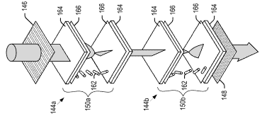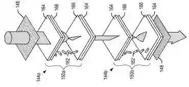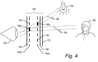 强光下的问题现在就基本解决了,不过使用调光面板的时候,会使得光无法聚焦或者是模糊,这时通过两个间隔开的LC面板144a、144b,通过阻挡特定的光矢量,从而提供定向光控制以及更清晰的对比度。