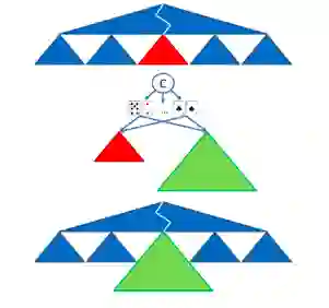 上:在游戏中出现子博弈。 中间:算法通过增强子博弈来确定该子博弈的更详细的策略,其中在每次迭代中对手被随机发牌,可选期望值来自旧的抽象(红色)或更新更细粒度的抽象(绿色),双方的策略都可以改变。 这迫使Libratus制定更细粒度的策略,至少和原来的抽象对手一样。 底部:用新的策略代替旧的策略。