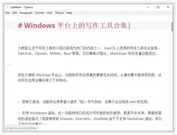 Windows 上支持 Markdown 的写作软件寥寥无几,Typora 是一款界面简洁同时功能强大的 Markdown 写作工具。