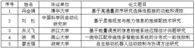 中国自动化学会于2018年11月17日在江苏省常熟市召开了2018年度CAA优秀博士学位论文奖终评会议,经专家评审委员会评审,现将评审结果公示如下(按姓氏笔画排序):