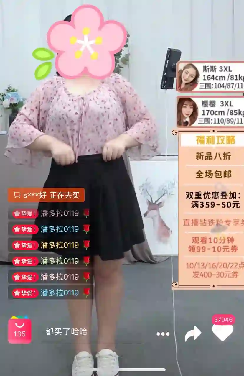 大码可能是最适合直播电商的细分类目之一。因为,比较瘦的身材基本上都有很多相似点,但胖的身材却各有各的胖,有的肚子大,有的腿粗,这种情况下,直播这种能够让大码模特直观呈现上身效果的方式,会打消消费者的身材顾虑,看准就下单。