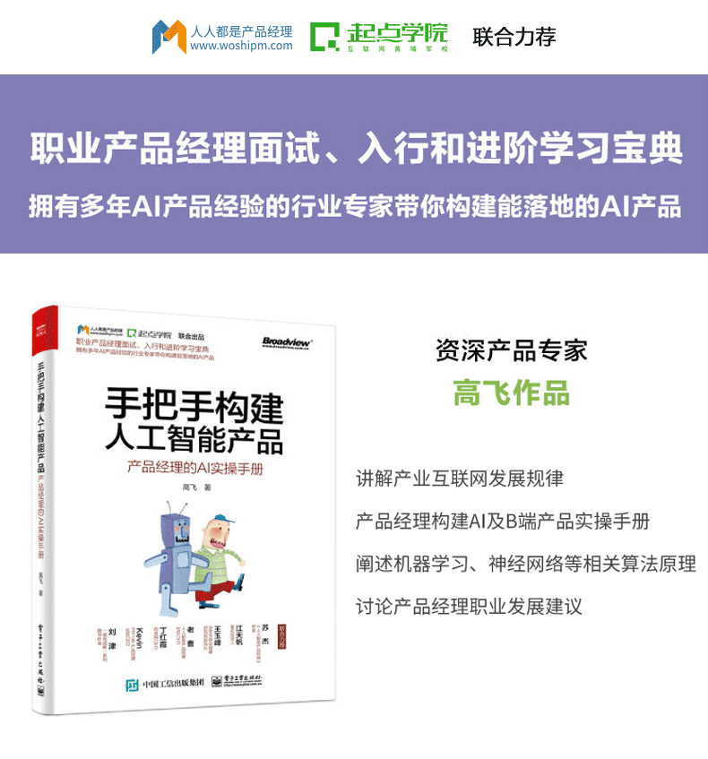 作为2015年北京第一期学员,从药剂师转行做产品,后来持续在医疗产品领域深耕,产品技能和医疗行业深度实践,也陆续和起点的校友们做了一些分享,作为拥有超过 7 年人工智能算法与产品经验的产品人,也将自己长期的产品工作中沉淀的方法,总结归纳成一本书籍,且1年前开始写的书稿终于上市。