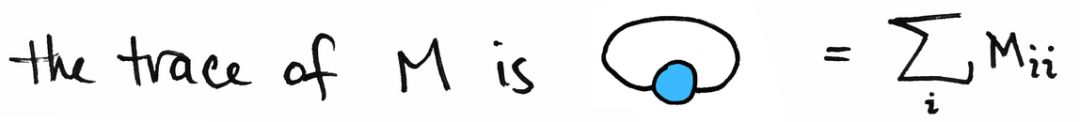 关于这个图形符号,我们还有更多想说的,但我将用另一个值得注意的特性来总结:证明过程可以变得非常简单!以矩阵的迹为例。矩阵的迹图很简单。它被定义为一个共同索引的总和: