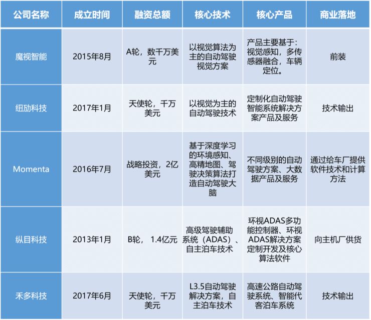 本文从上述几个维度,对国内几家颇受关注的自动驾驶创业公司进行了一次盘点。