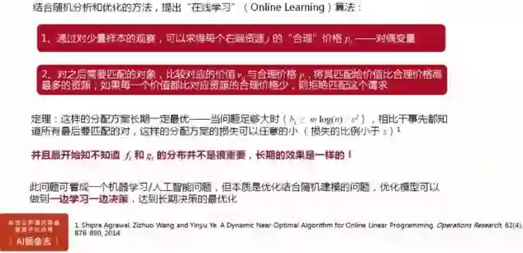 从某方面看,这个问题也有一个机器学习的成分,比如通过不断观察样本,机器可以学习每件商品的价值。本质上,这也是优化结合随机建模的问题,我们刚才讲到优化和随机建模是运筹学的两大核心内容,通过这样的算法和模型,我们可以面对这种实际的场景,达到长期最优的策略。