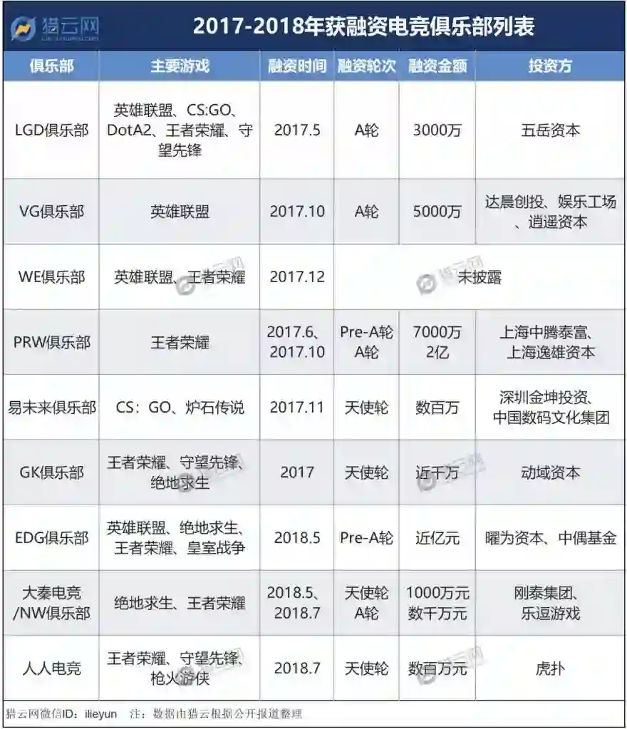 2017年是中国传统电竞俱乐部(以端游为主)纷纷脱离富二代注资、开始自主融资的一年,而2018年,则是新兴电竞俱乐部(以手游为主)跃上资本舞台的一年。