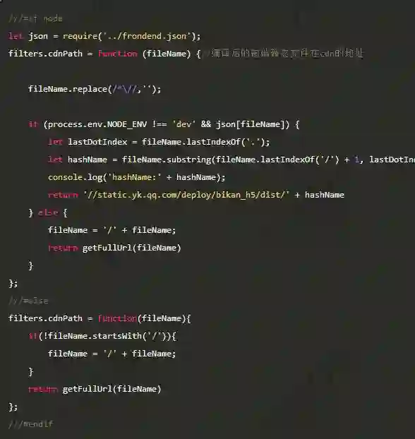 原静态资源也会随着node代码一起发布,线上页面保留能访问node端静态资源的能力。模版文件中资源引用调用注入的方法cdnPath,在浏览器端的话该方法不做任何调整,在服务器端如果开发环境不做调整,非开发环境下会根据资源表调整为cdn路径