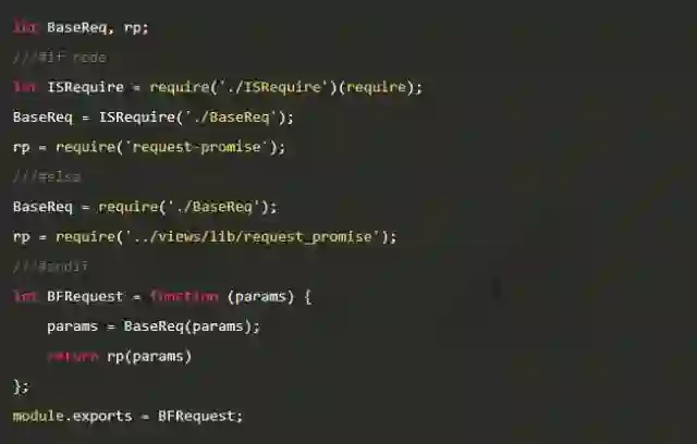 用ISRequire包裹require,node端用ISRequire读取BFRequest.js,实际读取的_node_BFRequest.js。