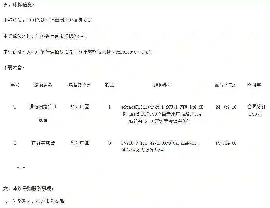 看下面这个中标信息,苏州市公安局采购的一个大单,光是一个无线宽带政务专网项目,标的金额就有近六千万之巨。