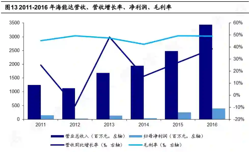 营收从2011年的12亿增长至2016年的34亿元,净利由1.46亿增长至4.02亿,增长曲线扶摇直上。