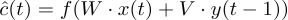 当然就是神经网络中的隐结点h啊!也就是说,人们潜意识里直接利用的是一段历史记忆融合后的东西h,而不单单是上一时间点的输出。而网络的输出则取自这个隐结点。所以更合理的刻画人的潜意识的模型应该是这样的: