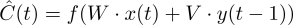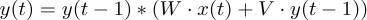 当然要先定义一下新信息是什么。不妨直接拿来simple RNN中对新信息的定义,即当前时刻的外部输入x(t)与前一时刻的网络输出(即反馈单元)y(t-1)联合得到网络在当前这一时刻get到的新信息,记为。即: