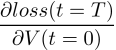 假如网络经过了T个时间步到了loss端,这时若要更新t=0时刻下网络参数V的权重,则即对t=0时刻的参数V求偏导,即计算
