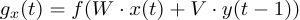 这个问题也很显然,当然就是让各个门受当前时刻的外部输入x(t)和上一时刻的输出y(t-1)啦,即。。。。。。?
