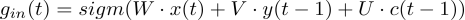 5、其中g_in受x(t)、h(t-1)、c(t-1)的控制。