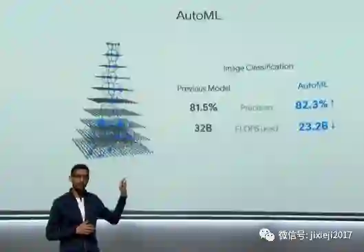 Pichai表示,电脑应该适应人们生活的方式,而不是人去适应电脑。很开心大家的关注点从移动终端转向人工智能。 谷歌创建了一套人工智能机器学习的系统叫做AutoML。