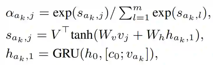 阅读网络的顶层(预测层)基于整体表示 V 提取新闻的显著性分段(span)。假设 S=((a1,e1),…,(aw,ew)) 表示显著性分段,其中 ai 和 ei 指代第 i 个分段的开始点和终止点。作者利用多标签分类问题来识别起始点,将整体表示 V 作为输入,L=(l1,...,lm) 作为输出。如果第 k 个词是分段的起始点,那么 lk=1,否则 lk=0。由于各个分段的起始点是互相独立的,可以通过设计多个二值分类器进行识别。该方法能够有效灵活地从长度变化的新闻中检测出不同数量的分段,并且由于多个分类器之间没有依赖性,可以平行计算。给定 ak,终止位置 ek 可以通过指针网络得到: